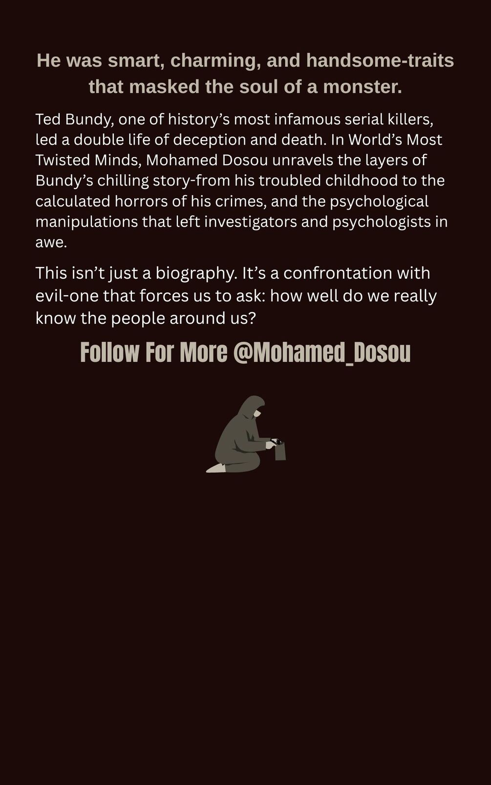 In this cinematic and chilling entry in the World’s Most Twisted Minds series, Mohamed Dosou digs deep into the story of Ted Bundy—the man whose crimes stunned the world and redefined the true crime genre.